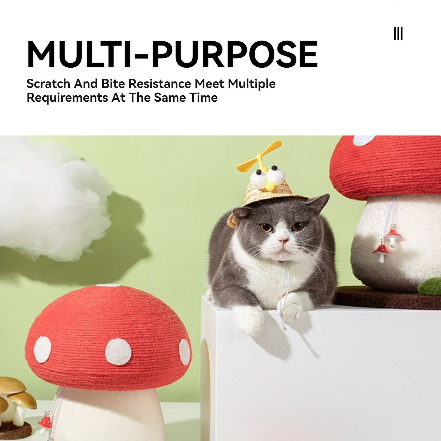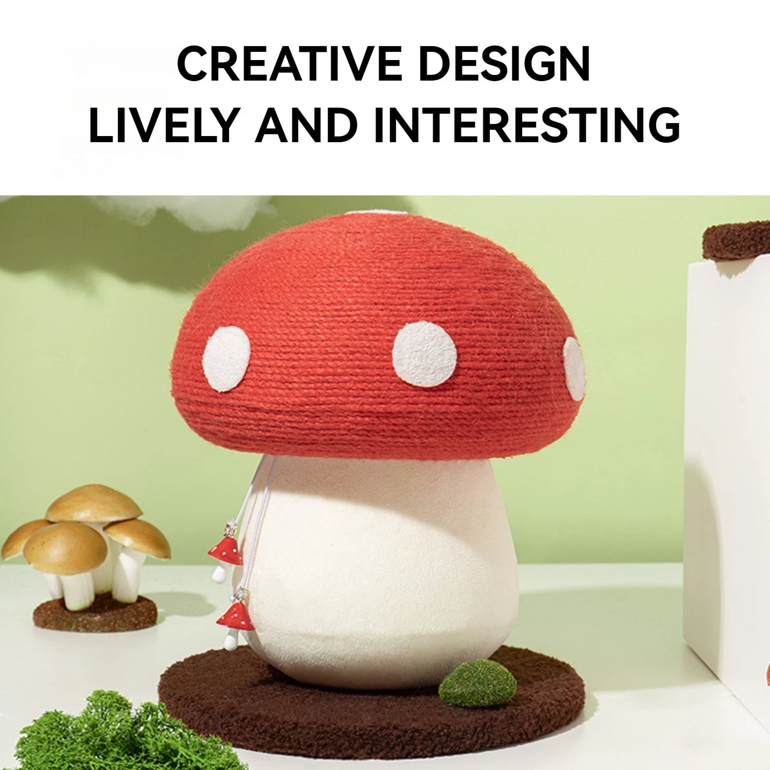 Add a touch of whimsy to your home while keeping your cat active and entertained with this mushroom-shaped scratching post. Crafted from soft flannel and durable hemp rope, it offers a fun and functional spot for your cat to scratch, stretch, and play.